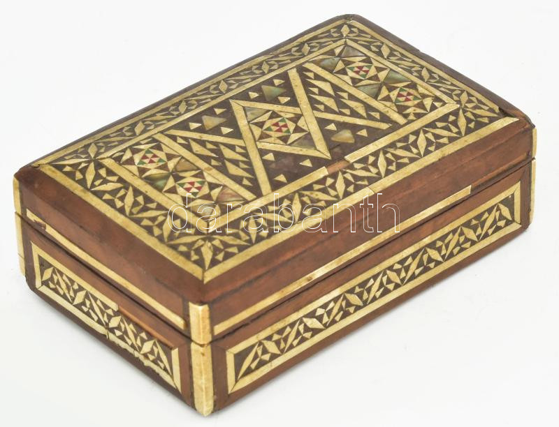 Csont berakásos fa doboz, sérüléssel 11x7 cm
