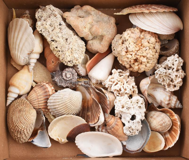 Doboznyi tengeri tétel, kagyló, korall, klf méretben