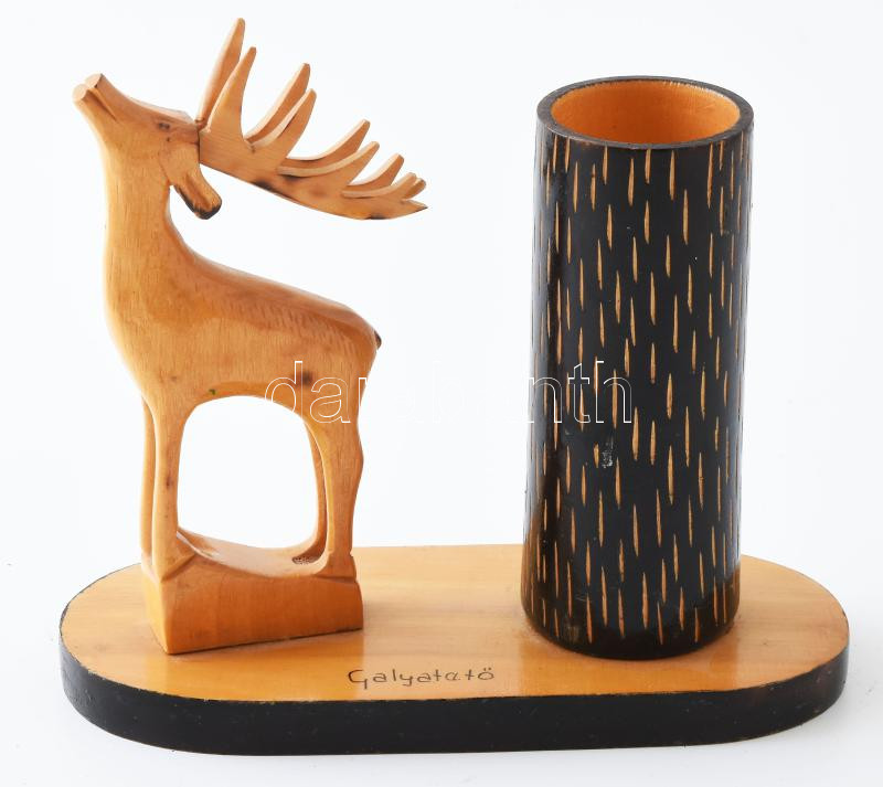 Galyatető, faragott fa asztali dísztárgy, cigarettatartó, alján címkév...