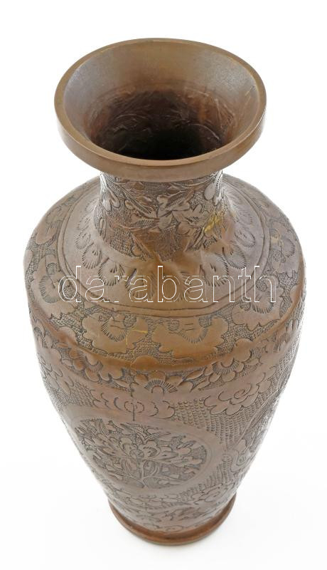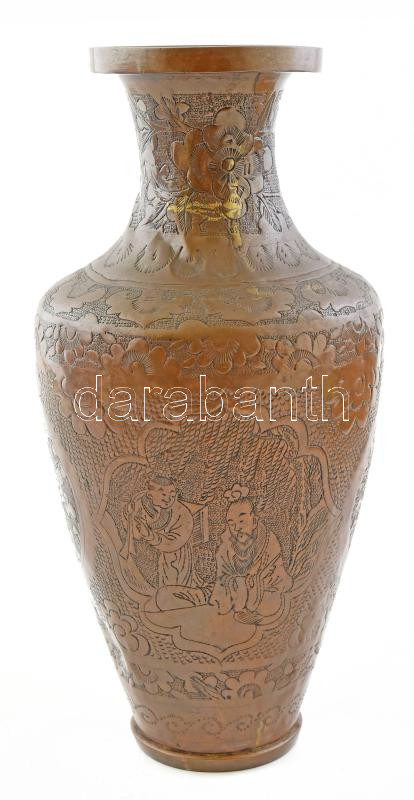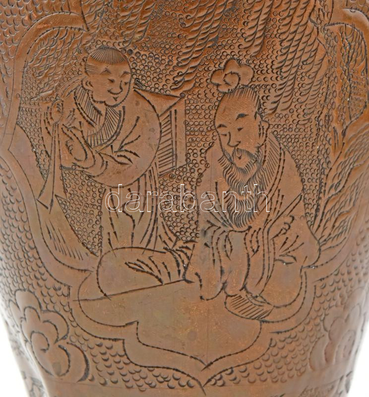 Kínai figurális réz váza. Kis horpadással 28 cm