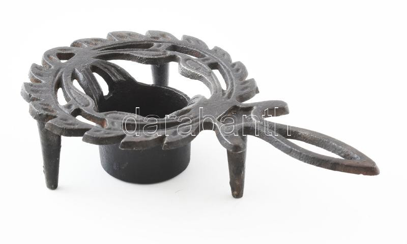 Öntöttvas mécsestartó, jelzett, h: 19 cm