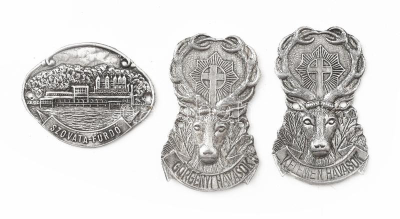 Régi erdélyi túrabot jelvények, 3 db: "Görgényi Havasok", "Kelemen Havasok", "Szováta-fürdő", 3,5x3 cm és 4,5x2,5 cm