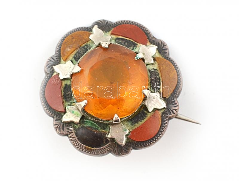 Régi fém bross, kopásokkal, d: 2,5 cm