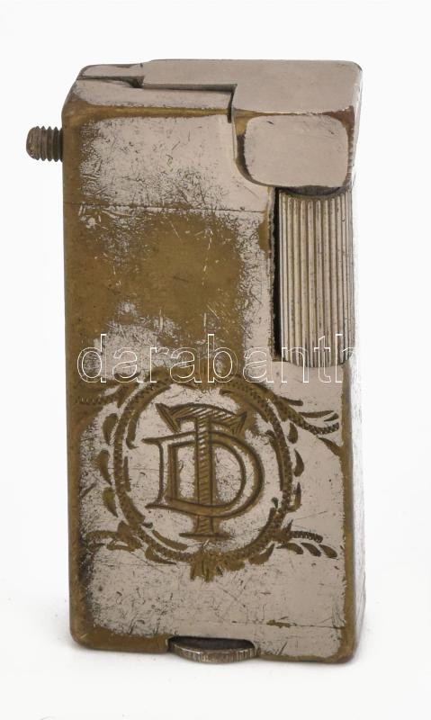 Régi monogramos ezüstözött bronz öngyújtó, kopott, m: 6 cm