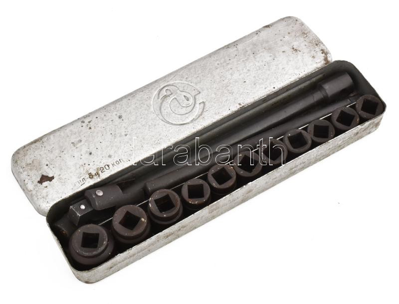 Régi orosz dugókulcs készlet, fémdobozban