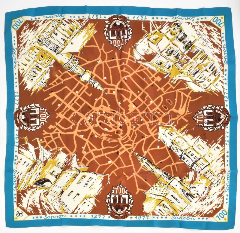 Sopron 700 éves (1277-1977) emlékkendő, kb. 85x80 cm