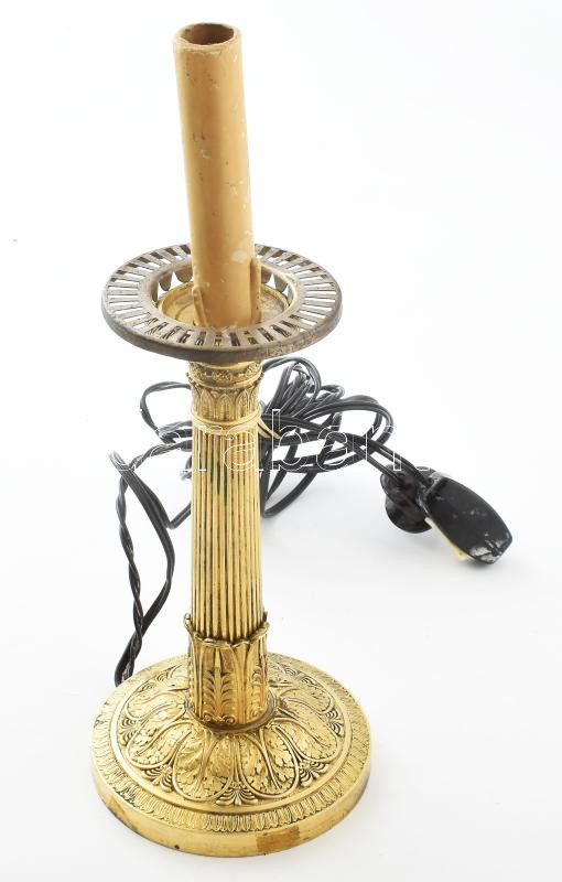 Szecessziós gyertyatartóból átalakított lámpa, kopással, m: 35 cm