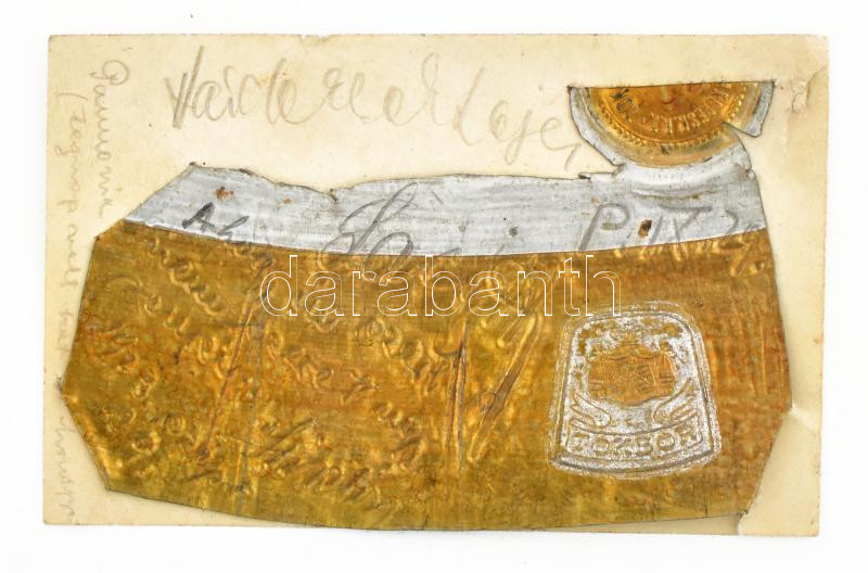 1929 Újévi üdvözlőkártya fém pezsgős kupak borítással