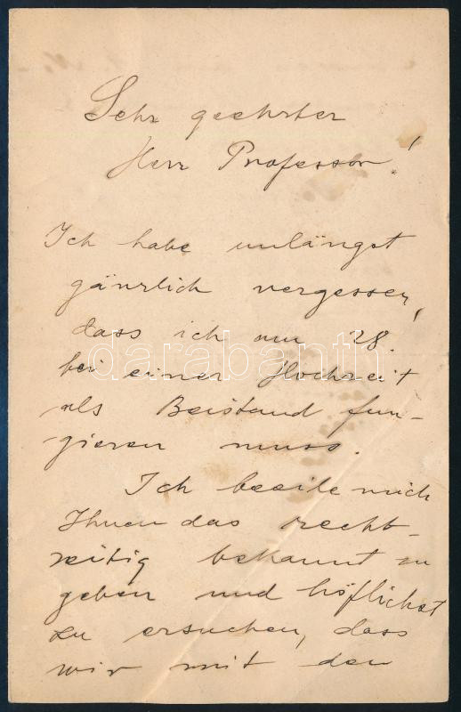 cca 1910 Kacsóh Pongrácz (1873-1923) zeneszerző autográf levele német nyelven "Sehr geehrter Herr Professor" megszólítással