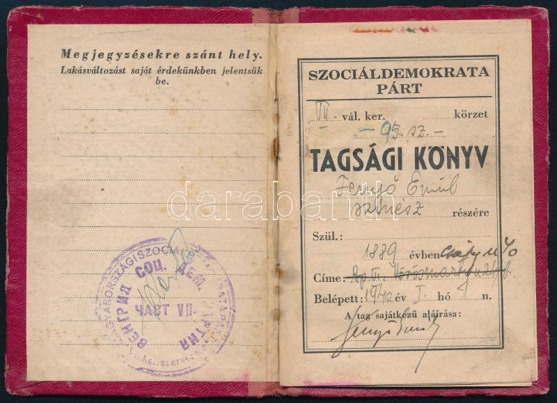https://www.darabanth.com/en/457-Online-auction/457.0/Art-and-other-collectibles/Judaica~1500004/Fried-Emil-1889-1980-szinesz-nemafilm-sztar-Szocialdemokrata-part-tagsagi-konyve-alairC3~II3030908