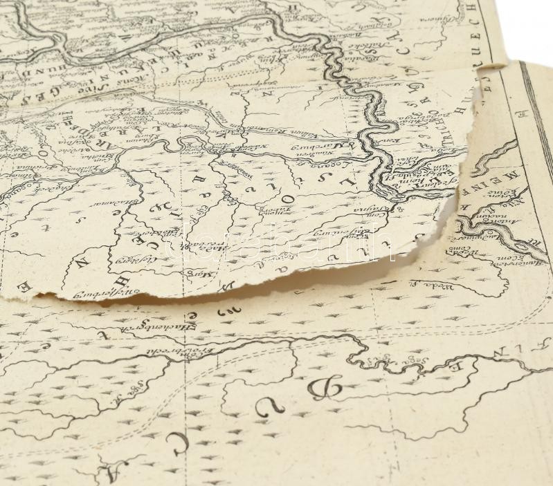 Description: 1732 Austrasiorum sive Franciae orientalis Ducatus cum pago Thuringiae australis... descriptus. Bessel, 1732. Kelet Franciaország és Közép-Európa térképe. Rézmetszet. Egy nagyobb beszakadással.. / Copper plate engraving with one large tear 72,5:86,5 cm