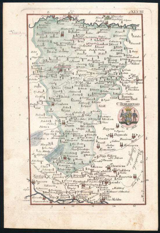 Description: 1804 Czetter Sámuel (1765-1829 k.): Temes vármegye térképe. C[omitatus] Temesiensis In: [Korabinszky János Mátyás]: Korabinsky, Johann Matthias: Atlas Regni Hungariae Portatilis LVIII. Bécs, 1804. Schaumburg und Compagnie, színezett rézmetszet,10,5x16,5 cm.