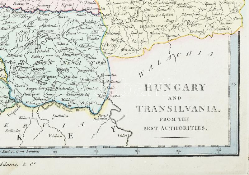 Description: Hungary and Transilvania. Drawn from the Latest Authorities. Magyarország és Erdély színezett rézmetszetű térképe. London, 1814. Hamilton, Adams & Co. 287x227 mm / Colored engraving.