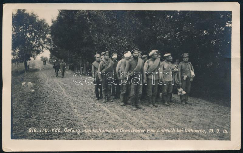 1915 Ditkowce (Ditkivci, Ukrajna) közelében történt betörés során elfo... https://www.darabanth.com/en/457-Online-auction/457.0/Art-and-other-collectibles/Military~1500011/1915-Ditkowce-Ditkivci-Ukrajna-kozeleben-tortent-betores-soran-elfogott-orosz-hadifoglyok-~II3034551
