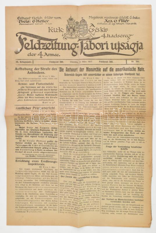 1917.III.6. Cs. és kir. 4. hadsereg tábori ujságja, számos érdekes írá...