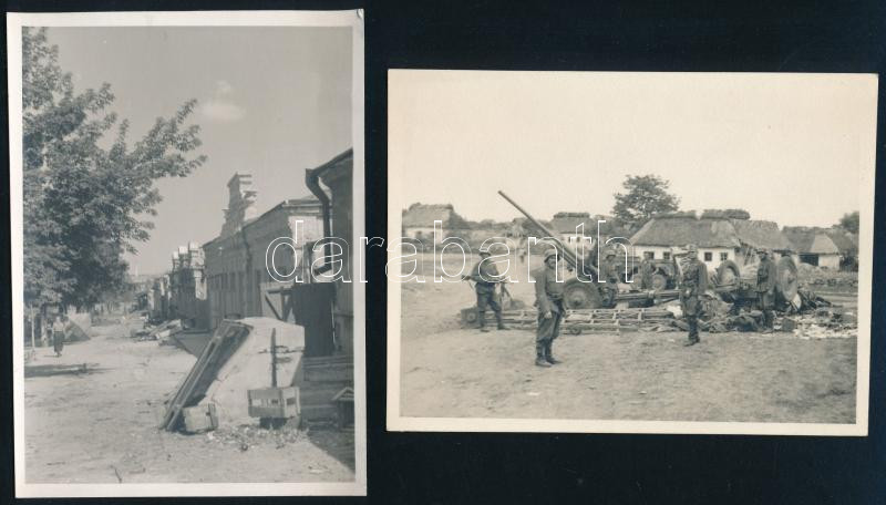 1941 Pervomajszk, katonák a település előtt, és a szétlőtt város, 2 db...