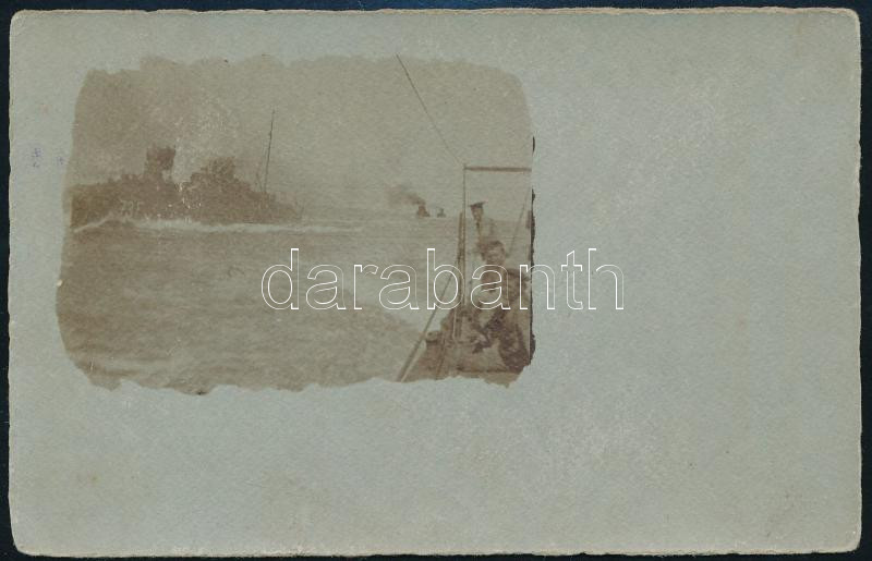 SM Tb 50 osztrák-magyar hadihajó felderítő útja az Adrián, hátoldalon feliratozott, jelzés nélküli fotólap, 9x14 cm