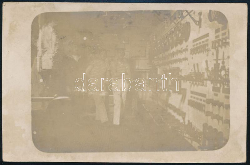 SMS Viribus Unitis hadihajó II. kapcsolóhelyisége, hátoldalon feliratozott, jelzés nélküli fotólap, kissé foltos, 9x14 cm