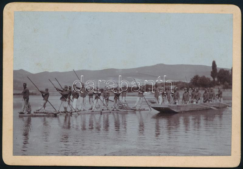 cca 1890 Katonák tutajon kabinetfotó 16x11 cm