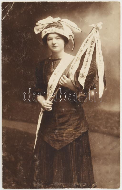 1914 Temesvár, korai kommunista hölgy, agitációs feliratokkal: (le a v...