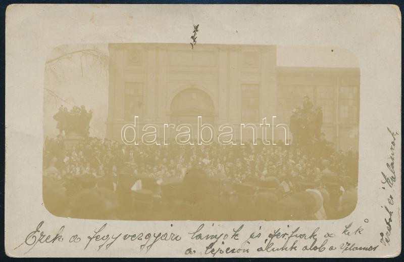 1917 Soroksári fegyvergyár sztrájk csoportkép feliratozva fotólap
