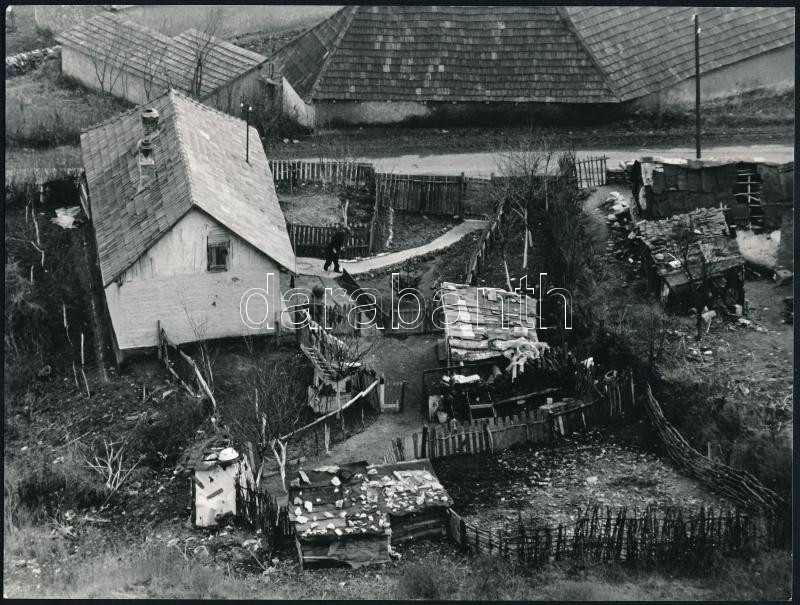 1975 Veres András kazincbarcikai fotóművész pecsétjével jelzett, feliratozott vintag fotóművészeti alkotás (Faluvég), ezüst zselatinos fotópapíron, 18x24 cm