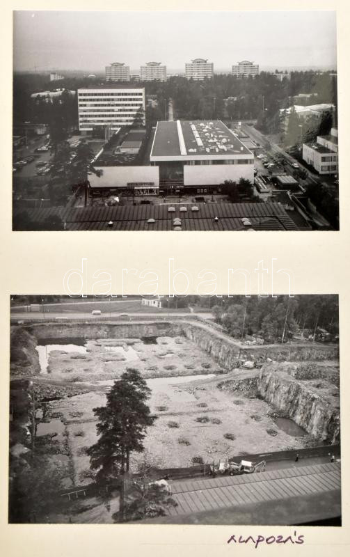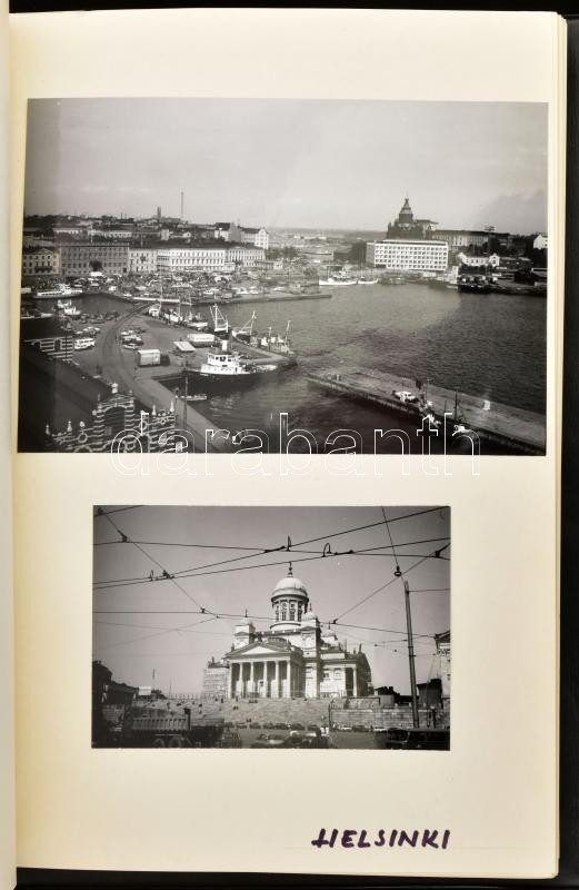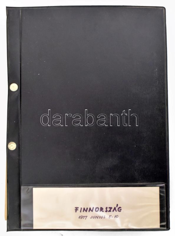 1977 Finnország, album kb. 147 db fotóval: Helsinki látványosságai, gyárban készült felvételek, lappföldi jellegzetességek, modern épületek, építkezések, stb., jó állapotban, 30,5x22 cm
