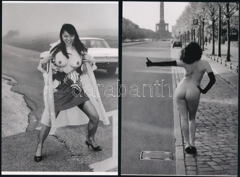 Az autóstopp kihívó - de bizonyára eredményes - taktikája", 2 db modern nagyítás, jelzés nélkül, 15x10 cm