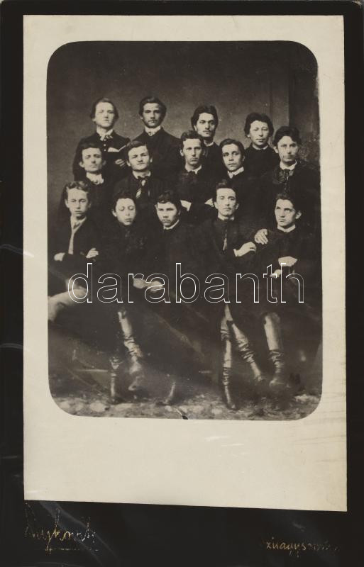 Description: cca 1890 Szilágsomlyói református gimnázium növendékeinek portréfotója, keményhátú fotó, Dajkovits E. szilágysomlyói műterméből, kissé kopott kartonnal, 16x10 cm