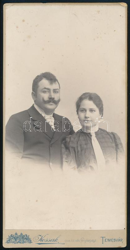 cca 1900 Házaspár portréja, keményhátú fotó Kossak József temesvári mű...
