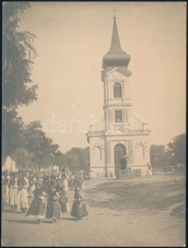 cca 1910 Vége a vasárnapi misének, 1 db vintage fotó, jelzés nélkül, ezüst zselatinos fotópapíron, 23,8x18 cm