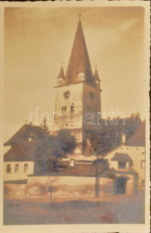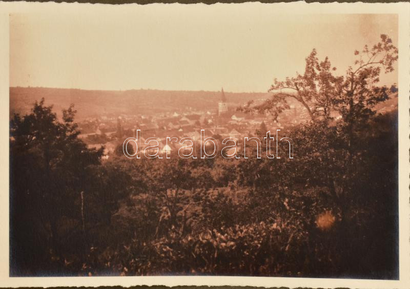 cca 1920-1930 "Die Heltauer Kirchenbu(r)g", Az erdélyi nagydísznódi (Cisnadie/Heltau/Hielt) szász erődtemplomról készült fotósorozat, az utolsó fotón Nagydísznód látképével, 14 fotó fotó albumlapokon, a táblák egy része előtt hártyapapírral, kiadói haránt-alakú fotóalbumban,kopott, kissé foltos borítóval, 17x11 cm és 15x10 cm között méretben.