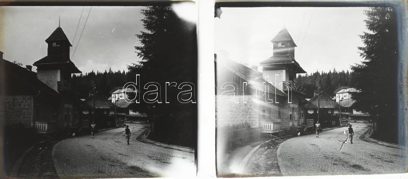 cca 1934 Sztereo üvegnegatívok: vegyesen vidéki települések, emberek, ...