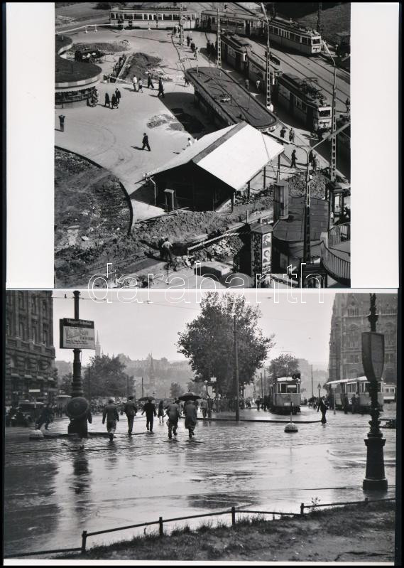 Description: cca 1968 Budapesti villamosok a Moszkva téren és a Kossuth téren, 2 db modern nagyítás Kotnyek Antal (1921-1990) budapesti fotóriporter hagyatékából, jelzés nélkül, 15x21 cm
