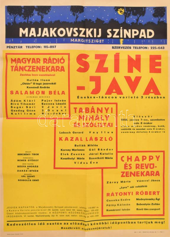 1958 Majakovszkij Színpad, Margitsziget műsorplakát, hajtott, 70×50 cm