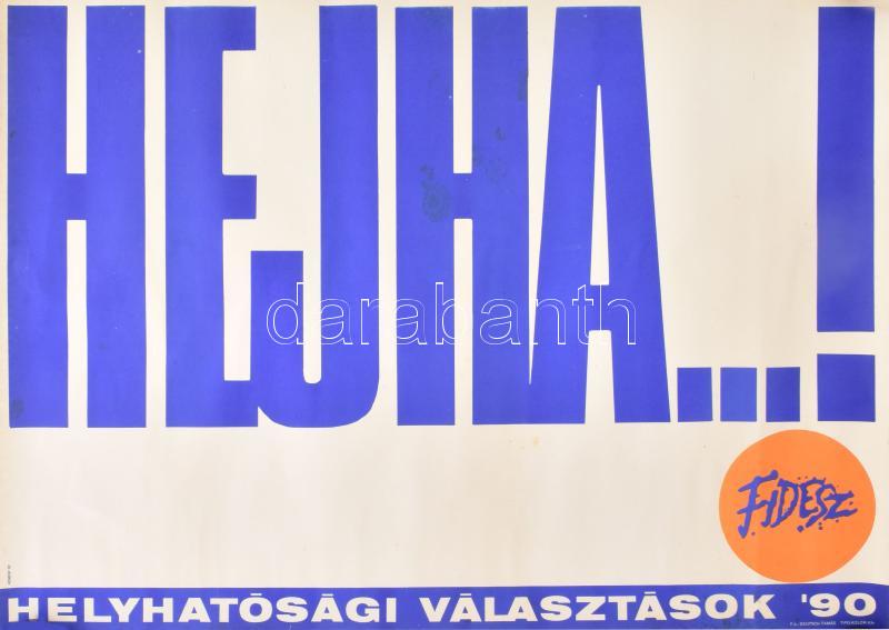 Kemény György (1936- ): "Hejha...!" Helyhatósági választások... https://www.darabanth.com/en/457-Online-auction/457.0/Art-and-other-collectibles/Posters~1500016/Kemeny-Gyorgy-1936-Hejha-Helyhatosagi-valasztasok-90-Fidesz-valasztasi-plakat-~II3046939