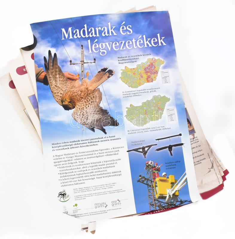 Madarak és Légvezetékek, természetvédelmi plakát, Bp., Magyar Madártani és Természetvédelmi Egyesület, 59x42 cm