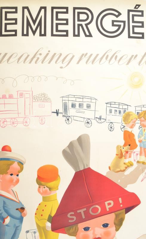 cca 1960 Emerge squeaking rubber toys. Máté András jelzett plakája / Poster. Offszet. Paper, offset lithography. 85x60 cm
