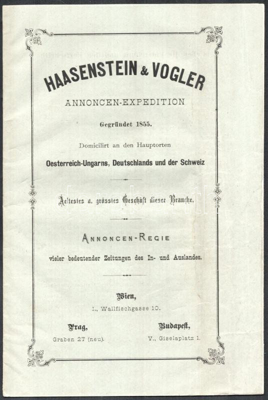 1875 A Haasenstein és Vogler Hirdetési Iroda Magyaroszágon. Ausztirába...