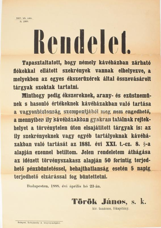 https://www.darabanth.com/en/457-Online-auction/457.0/Art-and-other-collectibles/Printed-Materials~2000363/1888-Bp-Rendelet-a-kavehazakban-levo-ekszerszekrenyekkel-kapcsolatban-szakadassal~II3058577