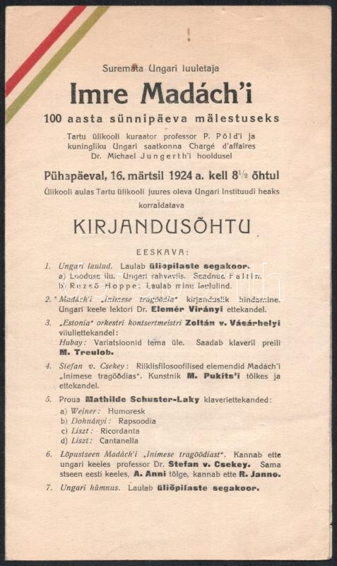 1924 Madách Imre születésének 100 évfordulós ünnepségének eszperantó n... https://www.darabanth.com/en/457-Online-auction/457.0/Art-and-other-collectibles/Printed-Materials~2000363/1924-Madach-Imre-szuletesenek-100-evfordulos-unnepsegenek-eszperanto-nyelvu-nyomtatvanya~II3053681