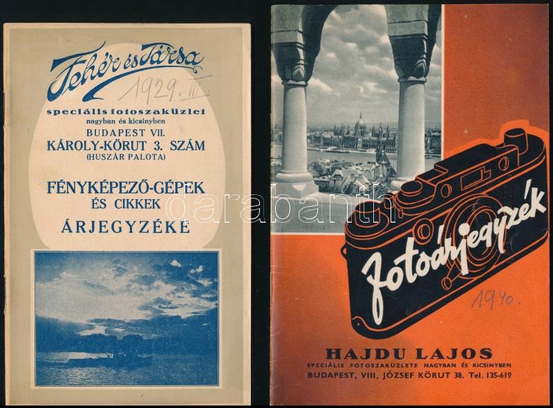 https://www.darabanth.com/en/457-Online-auction/457.0/Art-and-other-collectibles/Printed-Materials~2000363/1929-1940-Feher-es-Tarsa-valamint-Hajdu-Lajos-fotoszakuzletenek-kepes-katalogusa-2-db~II1920003