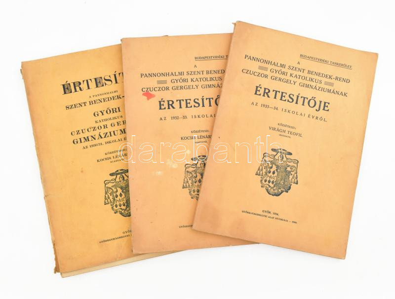 1931-1934 A Pannonhalmi Szent Benedek-rend Győri Katolikus Czuczor Ger... https://www.darabanth.com/en/457-Online-auction/457.0/Art-and-other-collectibles/Printed-Materials~2000363/1931-1934-A-Pannonhalmi-Szent-Benedek-rend-Gyori-Katolikus-Czuczor-Gergely-Gimnaziumanak-3-db-er~II3052031