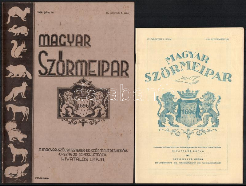 1933, 1938 A Magyar Szőrmeipar c. folyóirat VI. évf 9. és IX. évf 7. s...