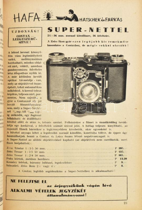1934 HAFA fotócikkek katalógusa, képekkel illusztrált, 126p