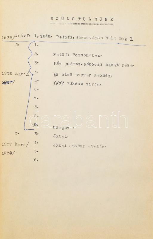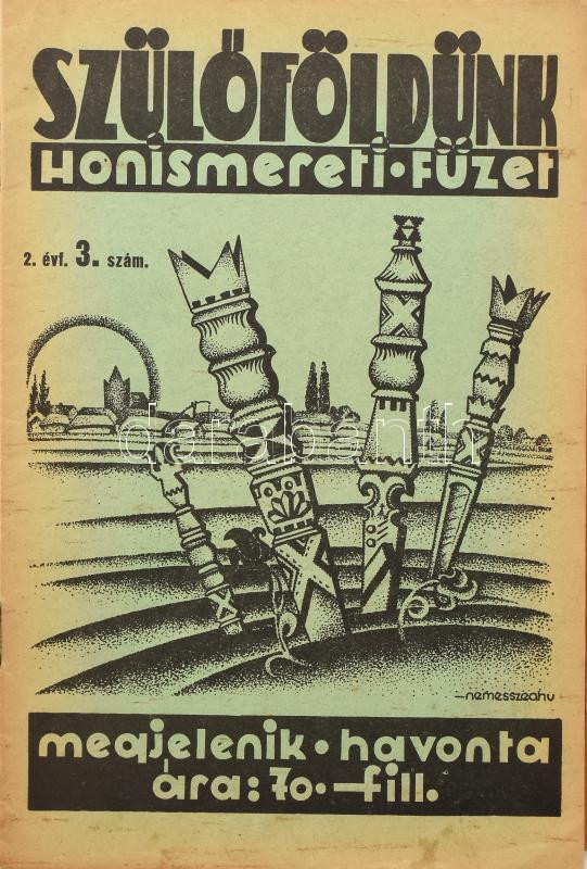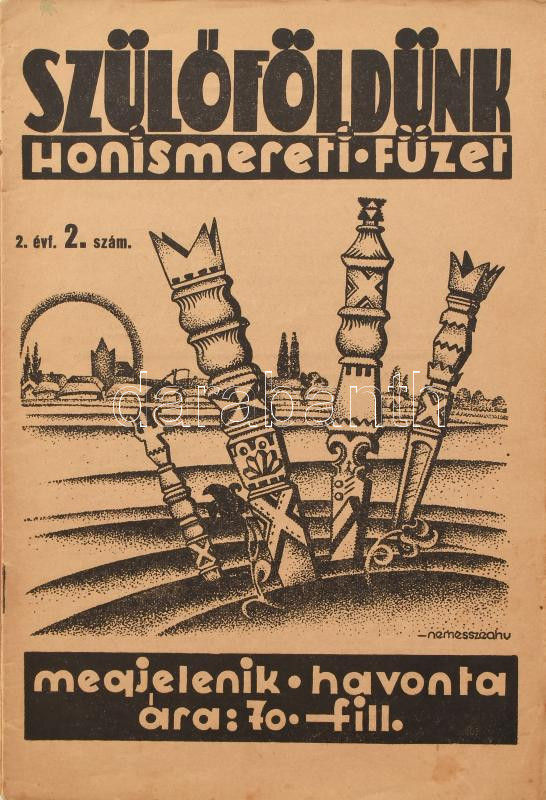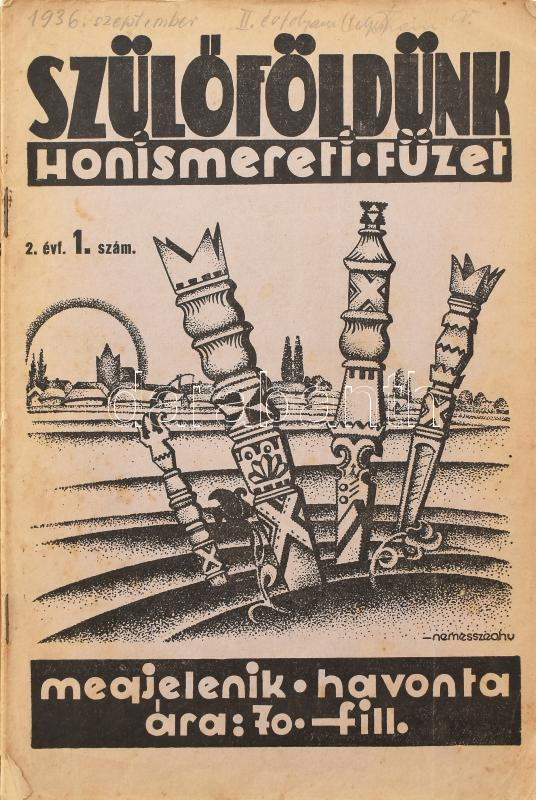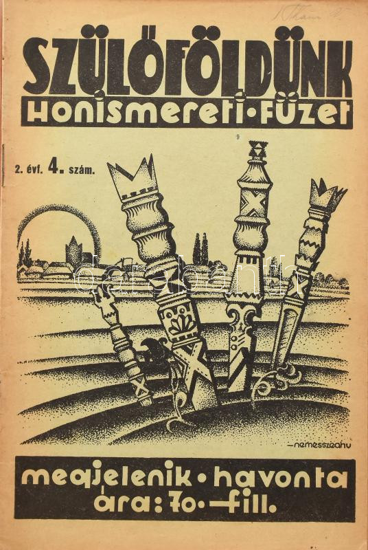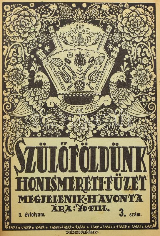 1935-1937 Szülőföldünk. Honismereti füzet. Szerk.: Szepessy Sándor. I. évf. 1. sz. (induló szám), II. évf. 1-10. sz. (teljes évfolyam), III. évf. 3-6. sz. (összesen 15 db). Fekete-fehér fotókkal, érdekes írásokkal. A borítókon Nemesszeghy Jenő grafikáival. Kiadói tűzött papírkötés, változó, túlnyomórészt jó állapotban. Havonta megjelenő folyóirat, melynek célja a felvidéki magyar kultúra ápolása, a nemzettudat fenntartása volt. Ritka!