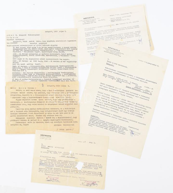 1948-1963 Fehér András a Népszava cégvezetőjének levele és iratai leváltásáról