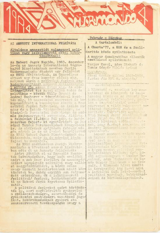 1984 AB Hírmondó c. szamizdat kiadvány 1984. február-márciusi, 4. szám... https://www.darabanth.com/en/457-Online-auction/457.0/Art-and-other-collectibles/Printed-Materials~2000363/1984-AB-Hirmondo-c-szamizdat-kiadvany-1984-februar-marciusi-4-szama-benne-tobbek-kozt-T~II3052664