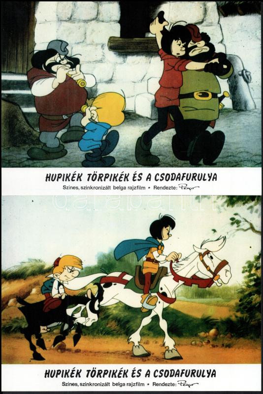 3 db filmekből készült promóciós kép: Alain Delon + Virna Lisi, Hupikék törpikék és a csodafurulya, 10,5×14,5 és