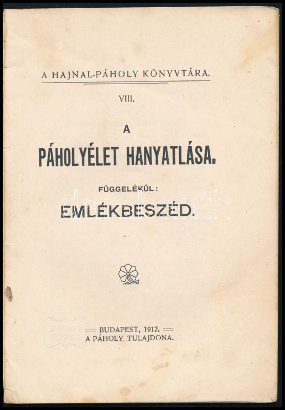 A páholyélet hanyatlása. Függelékül: emlékbeszéd. A Hajnal-Páholy Köny... https://www.darabanth.com/en/457-Online-auction/457.0/Art-and-other-collectibles/Printed-Materials~2000363/A-paholyelet-hanyatlasa-Fuggelekul-emlekbeszed-A-Hajnal-Paholy-Konyvtara-VIII-Bp-19~II3056626